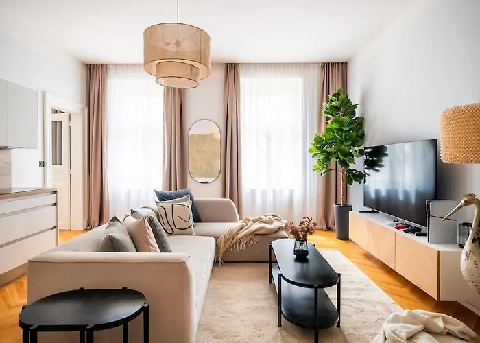 Die 100 m² große Ferienwohnung 3Br & 2,5Bath Heaven Of Harmony 2 Theater View Prag befindet sich im Bezirk West End von Prag, etwa 5 Minuten zu Fuß vom Café Slavia entfernt.